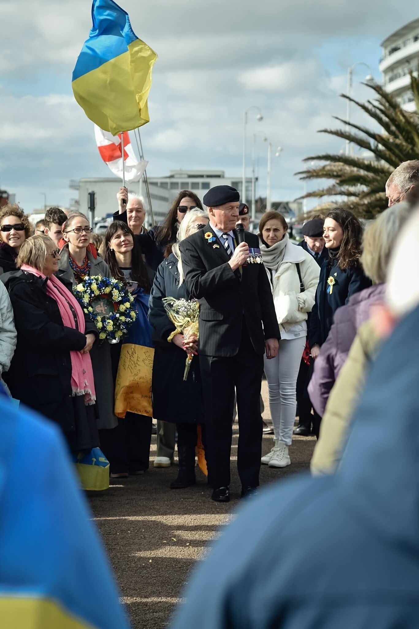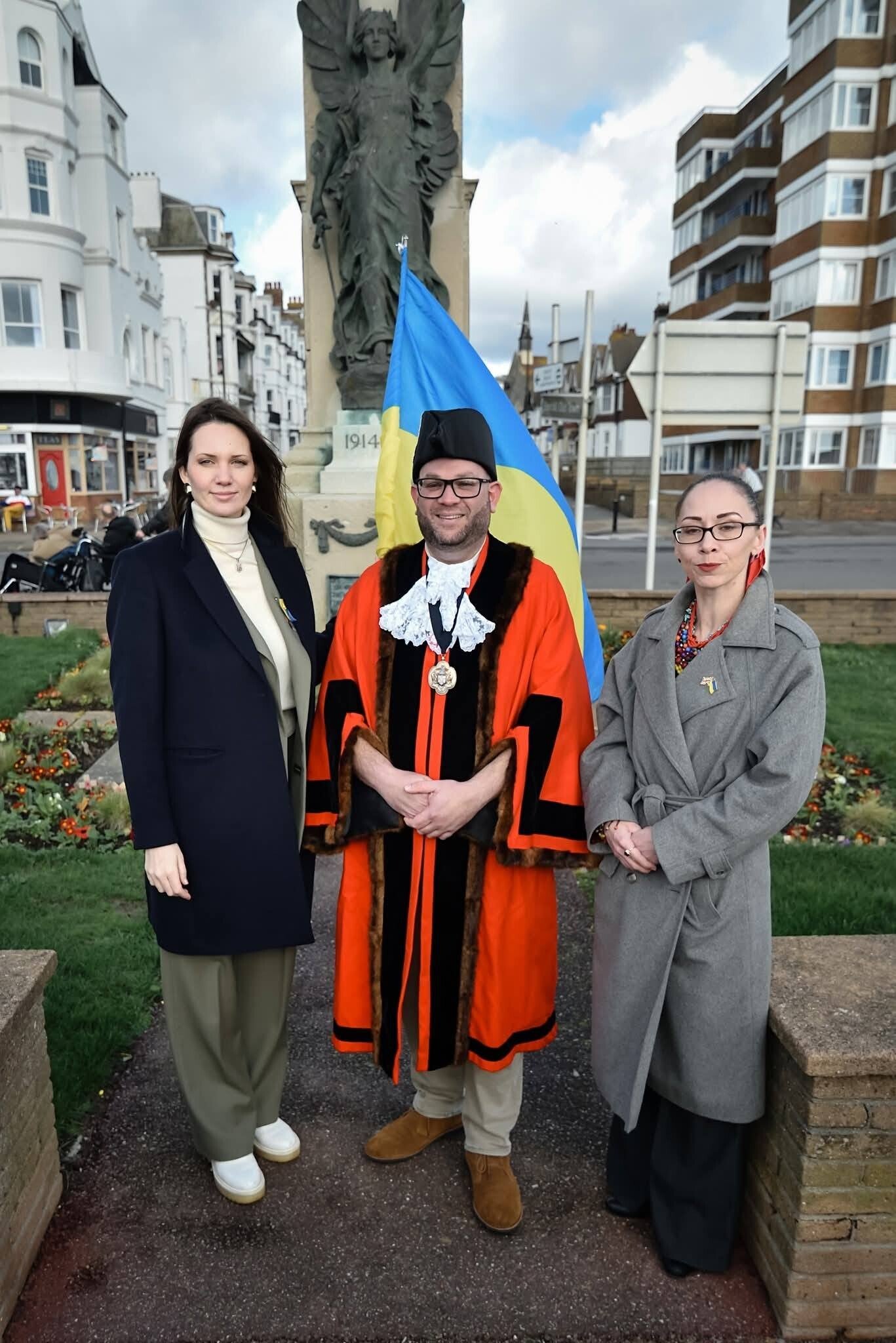 Three years ago, the Ukrainian community of Bexhill began this tradition of gathering in dignity and reflection during this painful week for Ukraine. We are deeply moved that this tradition continues to grow and to receive the support of Bexhill-on-Sea Town Council, our local MP Dr Kieran Mullan, the veterans represented by the Royal British Legion, Rother Voluntary Action, and AUGB Hastings and Rother Branch, AUGB Eastbourne Branch.