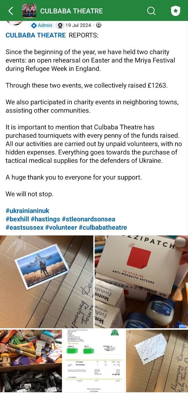 This year, Culbaba Theatre held our first fundraising initiative. We organised two charity community events: one Open Rehearsal on Easter, and the Mriya Festival during Refugee Week in England. Through these two events, together with our supporters, we raised a total of £1,263.